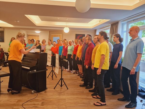 Bei sommerlichen Temperaturen besuchte uns am 19.08.2023 der Rösrather Chor COLORFUL VOICES (Leitung: Doris Röskenbleck) farbenfroh gekleidet mit einem bunten Programm zu dem Thema ALL ABOUT LOVE.
