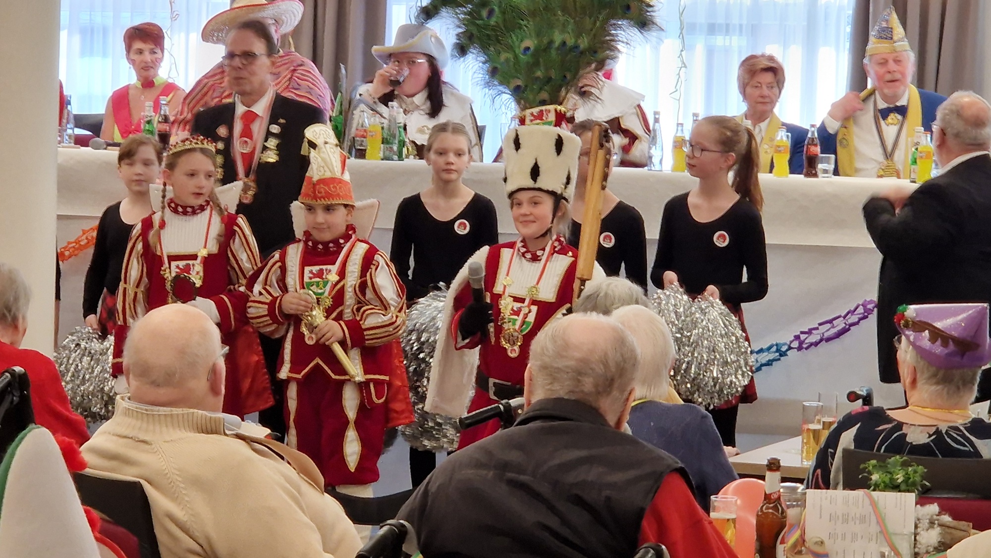 Der Elferrat und Sitzungspräsident Norbert Schmitz führten durch ein buntes Programm mit der Kindertanzgruppe der Bürgergarde, das Kinder- und auch das große Dreigestirn machten ihre Aufwartung, die alten Karnevalslieder fanden großen Anklang und auch der Auftritt der St. Servatius Funken unterhielt den prall gefüllten Saal.