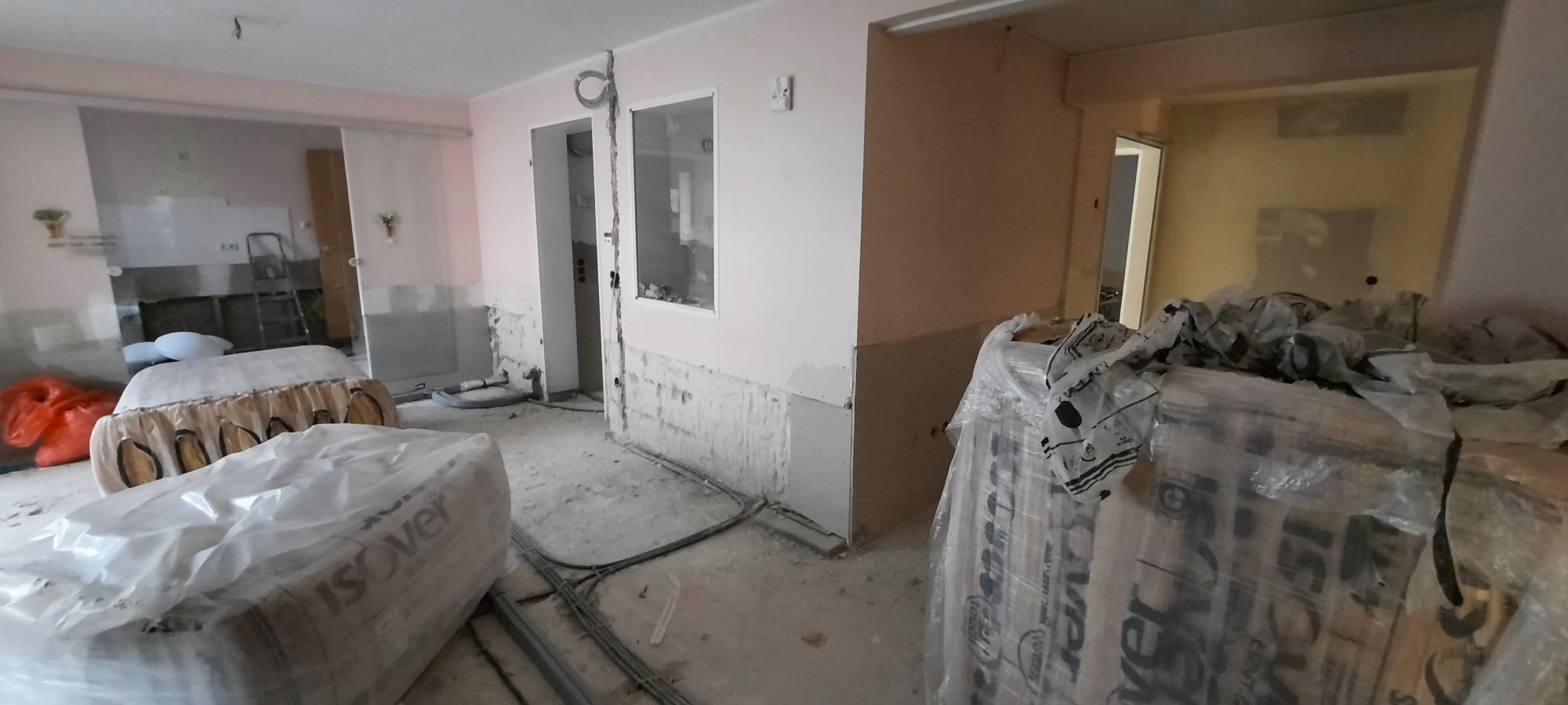 Im Haus Friedrich wurden die Elektroarbeiten abgeschlossen, die Sanitärarbeiten folgen in Kürze. Dann können die Trockenbauwände geschlossen werden.