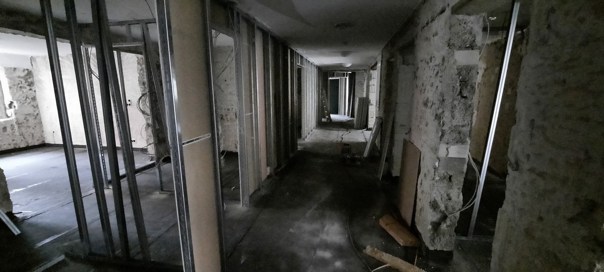 Im Haus Christian wurden die Trockenbauwände einseitig bereits wieder aufgebaut. Es folgen Elektro- und Sanitärarbeiten.