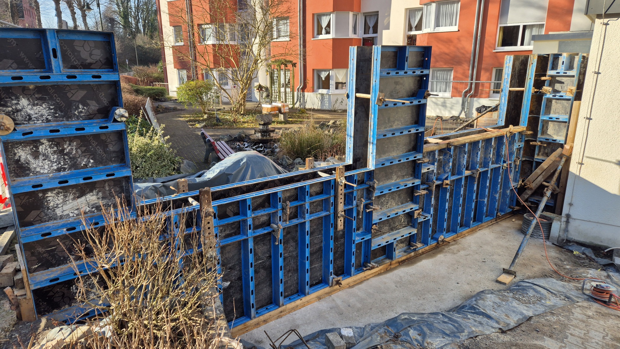Die Mauer hinter Haus Christian ist sogar schon mit der Schalung versehen (Bild 5), die auch die übrigen Mauern zieren wird.