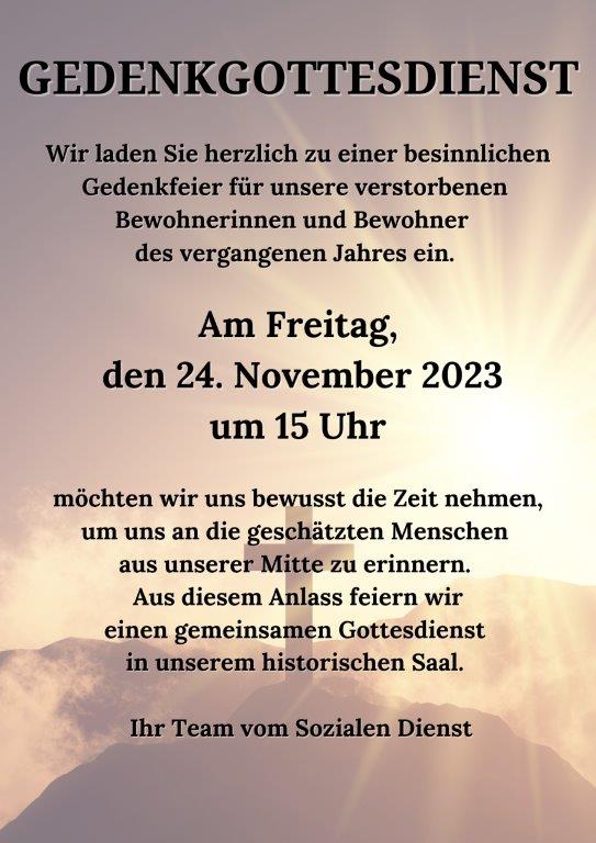 Wie in jedem Jahr gedenken wir der im Wöllner-Stift verstorbenen Bewohnerinnen und Bewohner.