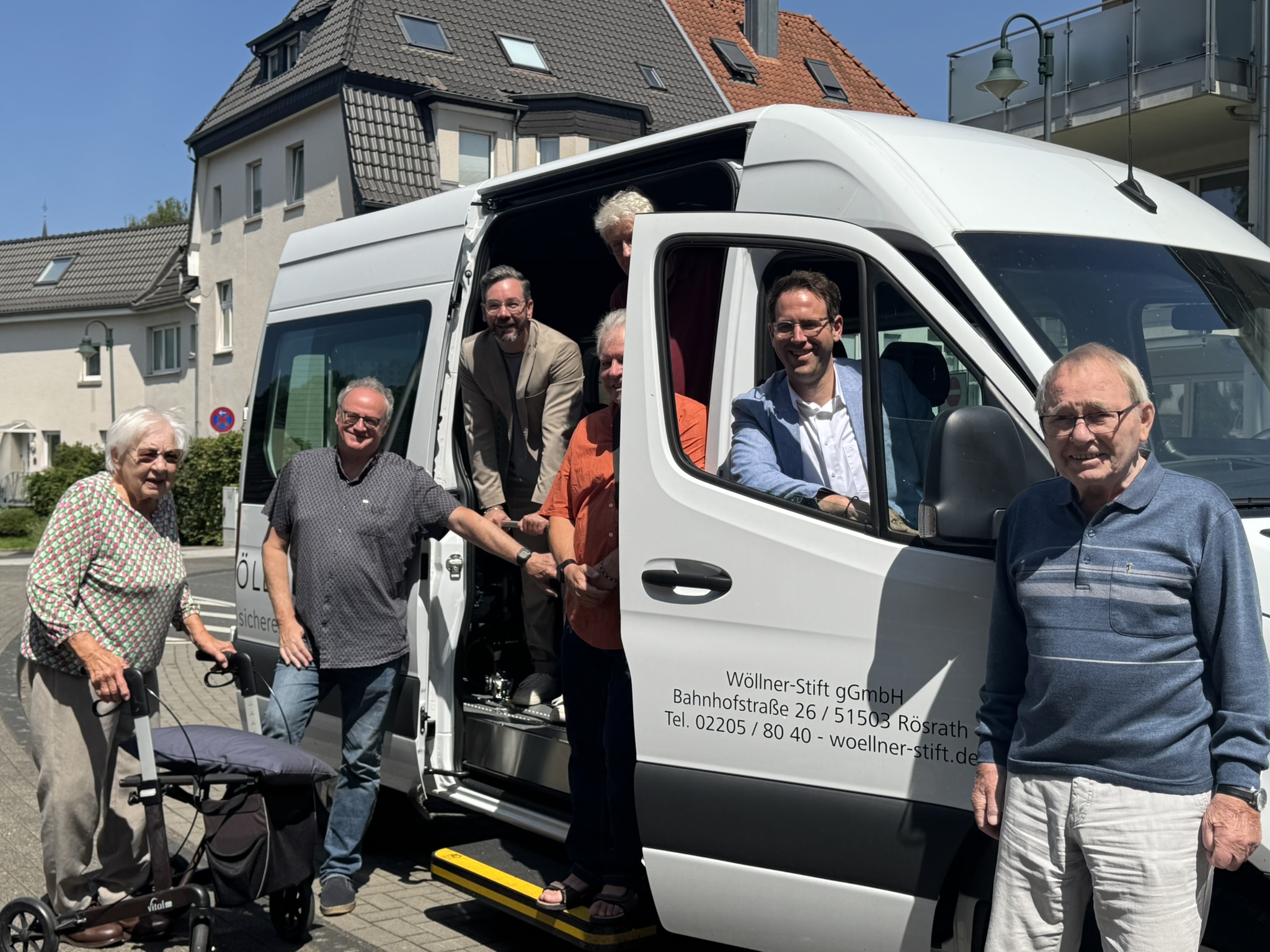 Der alte Bus des Wöllner-Stift war in die Jahre gekommen. Ein neuer musste her. Aufgrund der speziellen Erfordernisse durch den Transport der oft in ihrer Mobilität eingeschränkten Bewohner musste der Bus mit einigen Hilfsmitteln ausgestattet werden, wie z.B. einer Rollstuhlrampe, einer automatischen Einstiegshilfe etc.